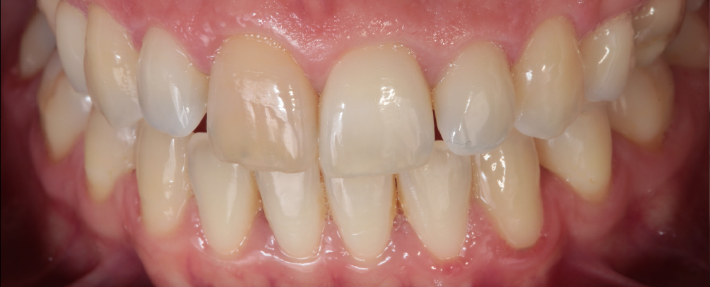 Paciente con desarmonía entre sus piezas dentarias y cambio de coloración en el diente 11,